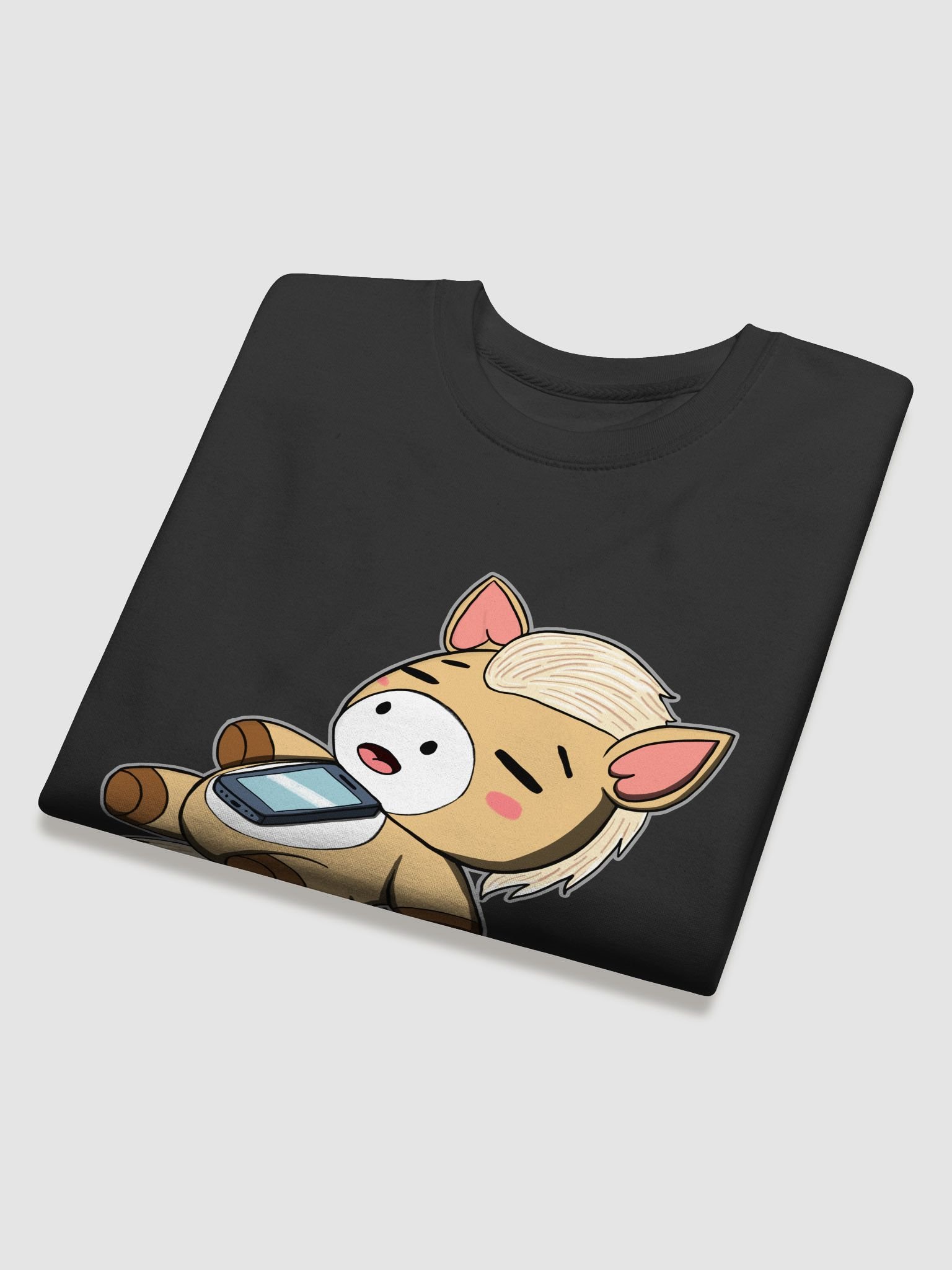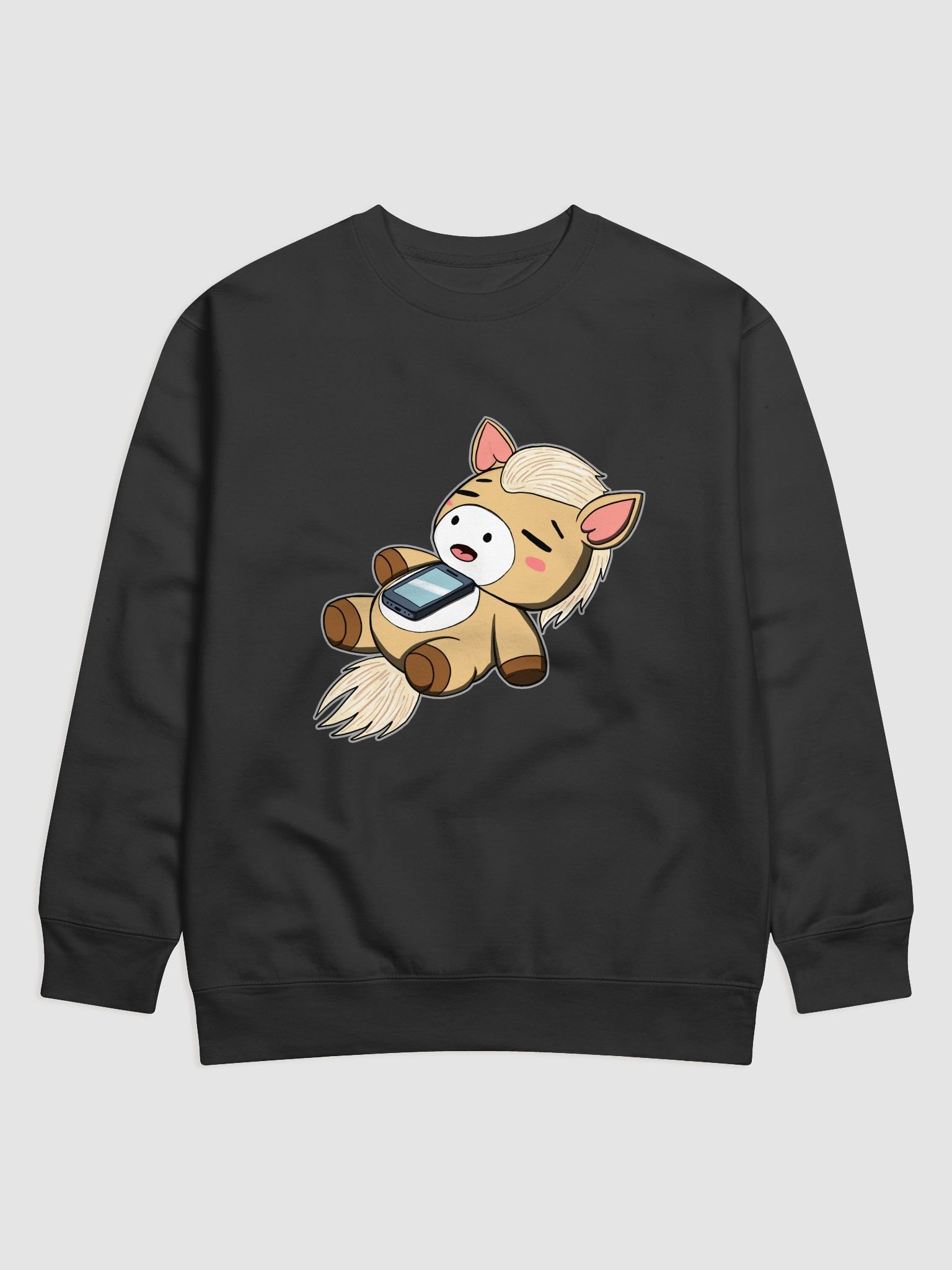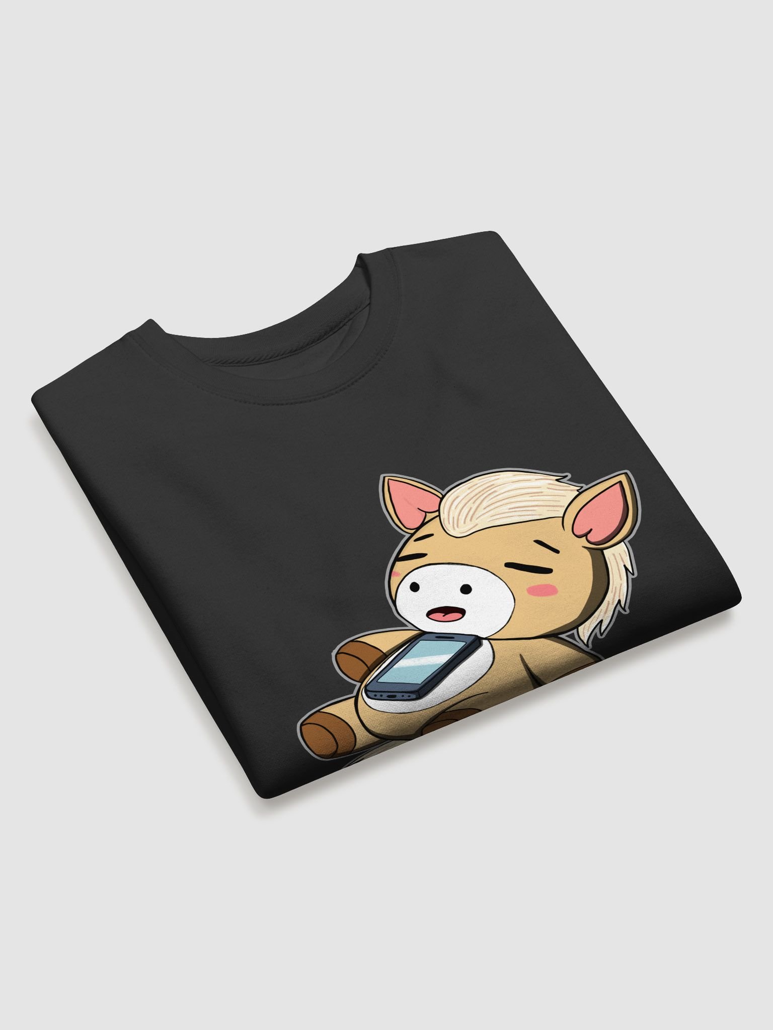 Sleepy Waffle Sweatshirt | Plush Horse Passed Out with Phone | Relatable Doomscrolling Nap Shirt